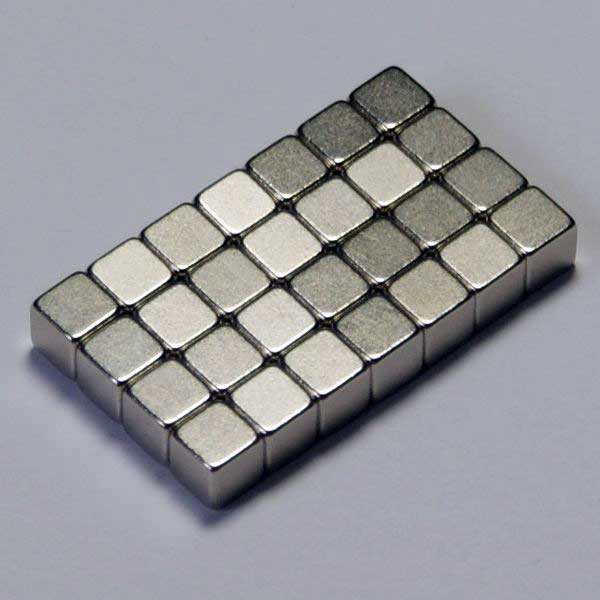 Rare earth materials are vital to the manufacture of wind turbines, electric and hybrid cars, and consumer electronics due to their powerful magnetic properties. Yet they are also expensive and come almost entirely from one source—China. Whereas electric motors use magnets to transform electrical energy into mechanical energy, sintered rare earth magnets produce incredibly strong magnetic fields at small sizes, allowing manufacturers to build smaller, lighter motors, according to Electron Energy Corp. The firm has teamed up with University of Delaware researchers to develop a manufacturing process that increases sintered rare earth magnets’ electrical resistivity by at least 30 percent. Their goal is to make magnets with increased electrical resistivity that can reduce motor efficiency losses even when motors operate at high speeds. Shown here are blocks of nickel-plated neodymium magnet, one of the most widely used types of rare-earth magnet.