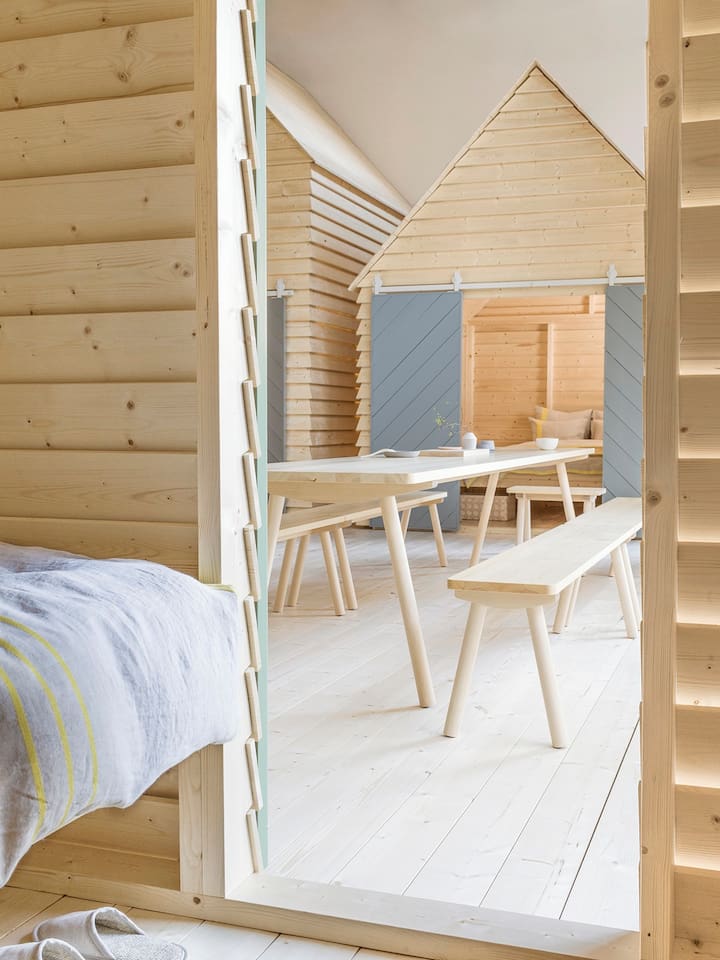 Have a sleepover in Finland. Wake up in Paris. That is Institut finlandais’ slogan for their unique KOTI living pop-up airbnb. An installation of six cottages set inside the Institut finlandais (available for 100 days only), from January till May 2017 for the celebration of the centenary of Finnish independence. The space was launched this weekend during Maison et Objet and our friend Alexandra Barlassina of the Italian blog Gucki alerted us of this gem when she instagrammed the above photo. We knew we had to include it in our hotel style series here on Poppytalk. Above photo by Gucki, all other photos by Institut finlandais.